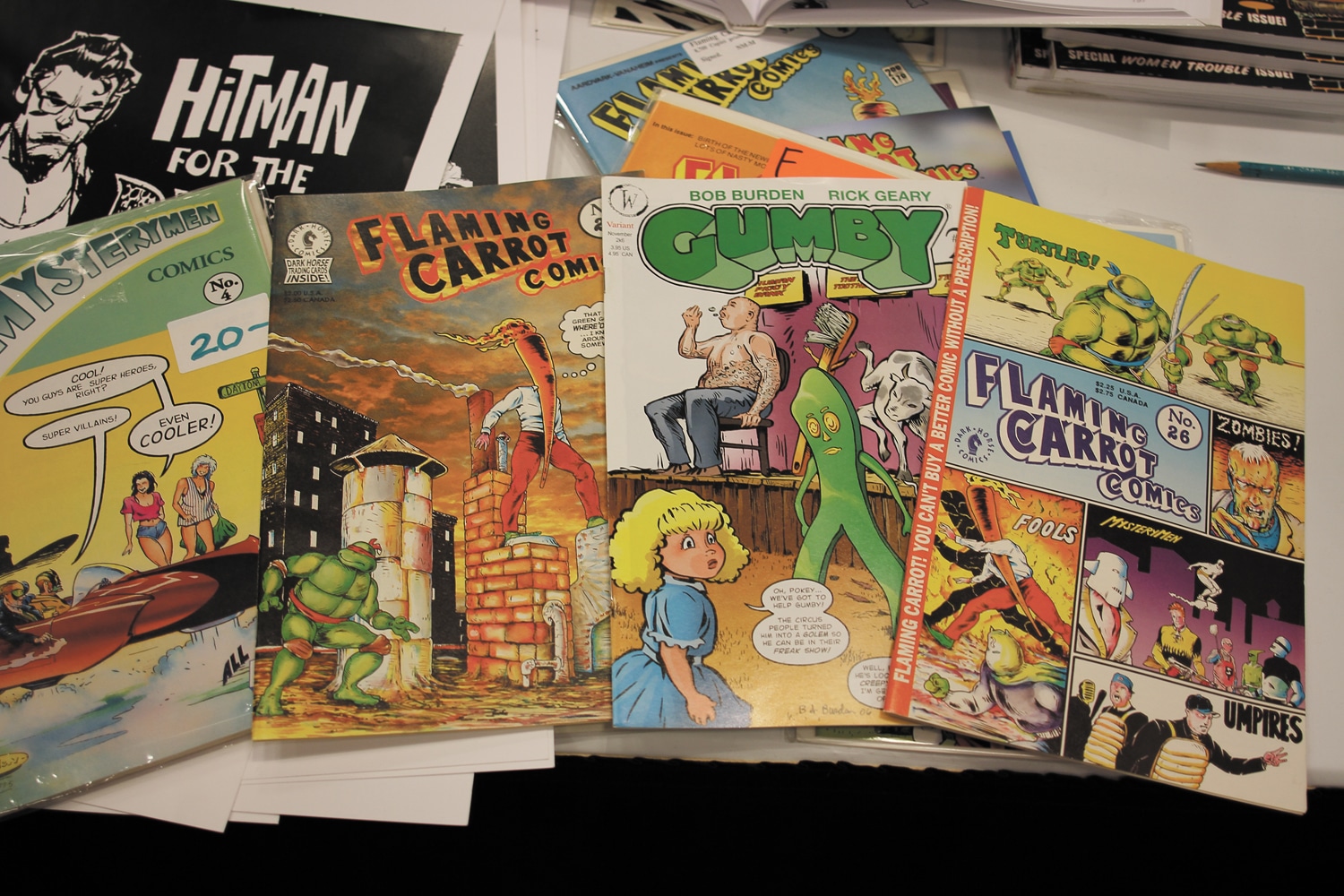 Just a few tables down from Cook in Comic Book Alley sat the booth of another well-respected local artist, Bob Burden, creator of the Flaming Carrot comics. “One day I came up with the dumbest idea ever for a superhero,” said Burden. “He has no superpowers, he has no secret identity, and he’s not very smart.”